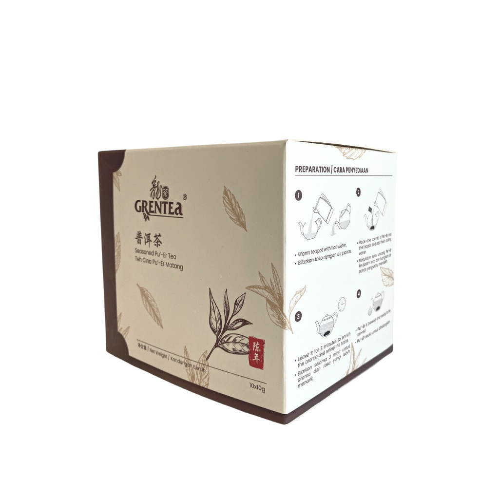 - Place one packet of Pu’ Er into the teapot and add fresh boiling water