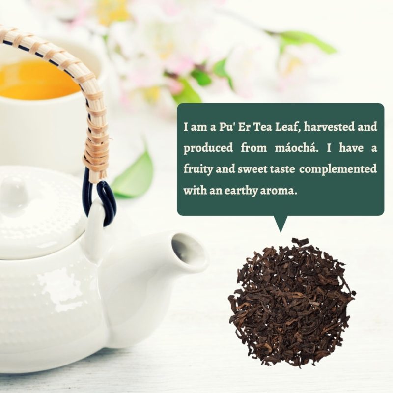 Pu’ Er falls under the umbrella category of fermented teas commonly known as ‘dark tea’ (hēichá). The increase in demand for Pu’ Er first commenced during the 1950s in Hong Kong. The aroma Pu’ Er gives would remind you of the humid forests and wet caverns. They are typically autumnal and would give you an aftertaste like sweet dried fruits or honey.